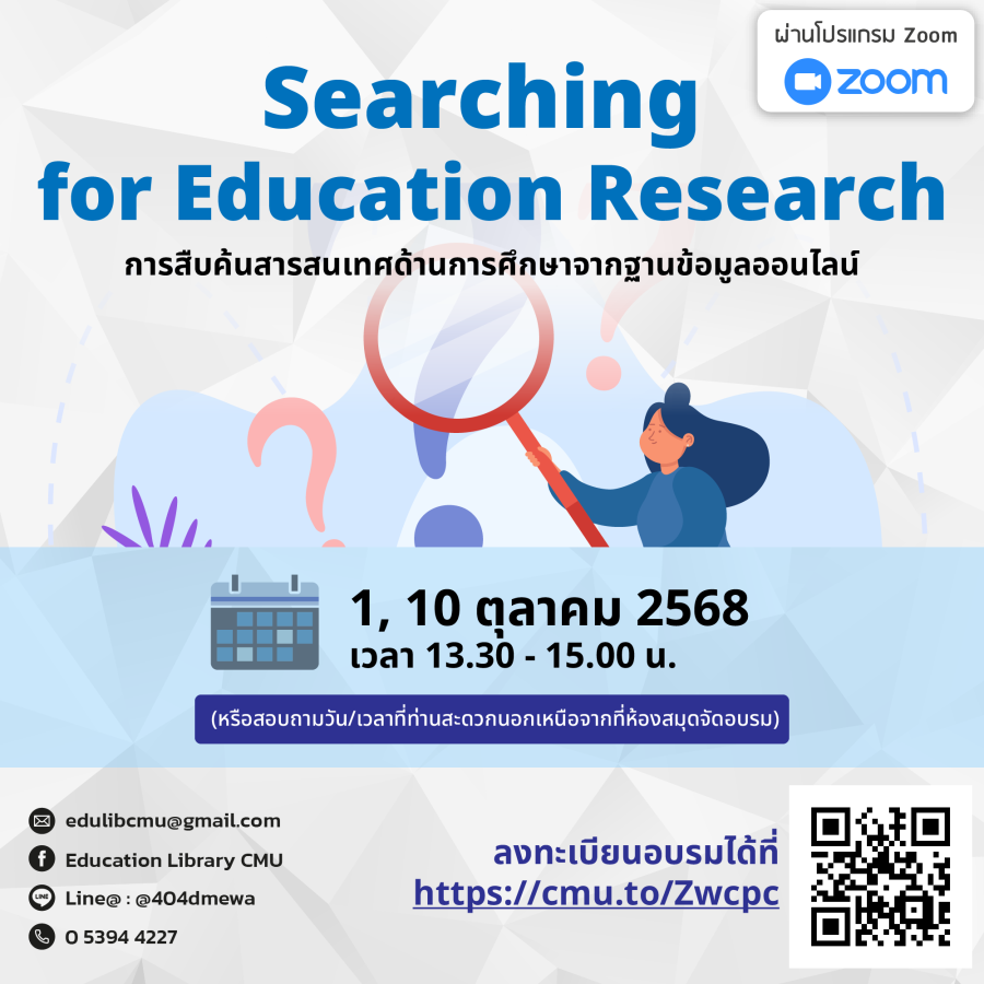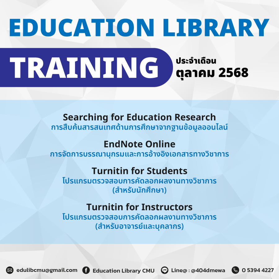 ขอเชิญเข้าร่วมอบรมการใช้ฐานข้อมูลอิเล็กทรอนิกส์เพื่อการค้นคว้าและวิจัย เดือนตุลาคม 2568
